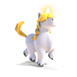 Este pônei pulcroso de cabeça pontuda e empinada não atua apenas como um farol à noite para os viajantes perdidos com seu chifre brilhante. Os heróis que se deleitam em seu esplendor regenerativo vão recuperar os danos ao longo do tempo como se fosse a sua própria curadora pessoal!