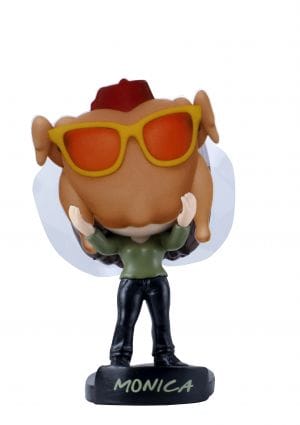MONICA no episódio “Aquele com todos os dias de Ação de Graça”, quando coloca sua cabeça dentro do peru de Ação de Graças para fazer Chandler rir e se desculpar por ele ter cortado eu dedo do pé no passado. A miniatura possui uma máscara móvel simulando o peru.