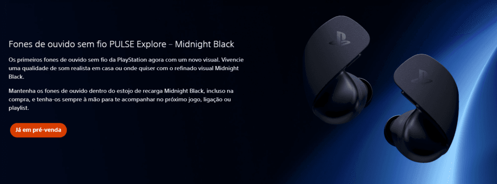 A PlayStation acaba de expandir sua coleção Midnight Black com dois novos acessórios premium: o Headset sem fio PULSE Elite e os Fones de ouvido sem fio PULSE Explore. Os produtos já estão disponíveis nos principais varejistas do país por R$ 999,90 (Elite) e R$ 1.299,90 (Explore).