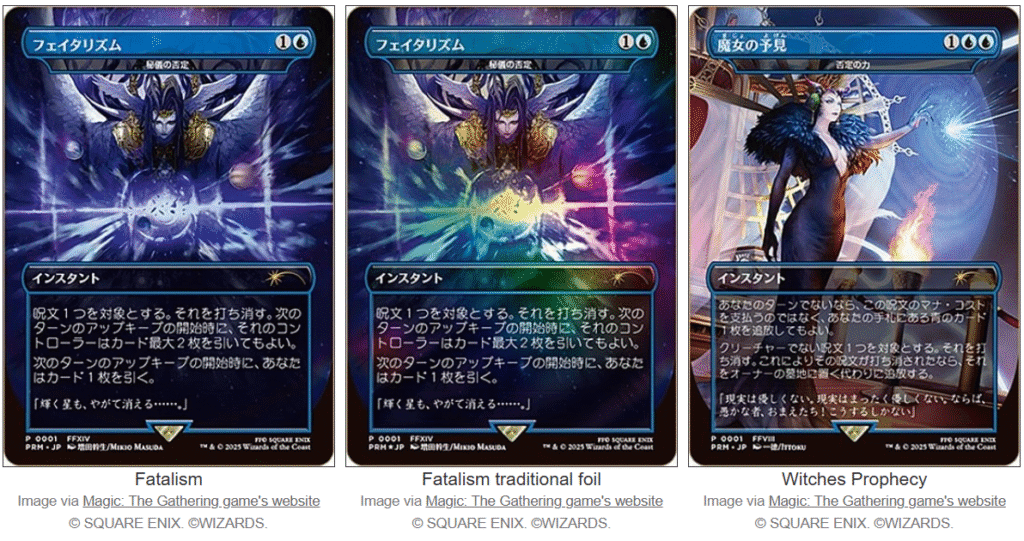 - Fatalism (reimpressão de Arcane Denial), com arte do vilão Endsinger, de Final Fantasy XIV