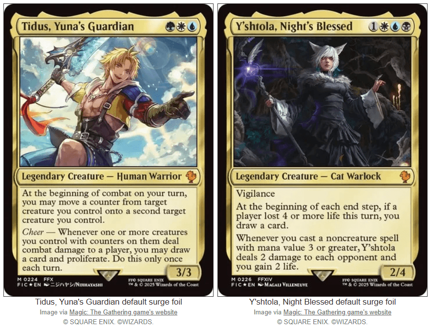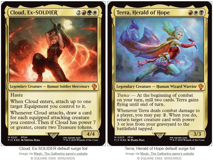 Além de Tifa, outras cartas do crossover também foram reveladas. No site japonês de MTG, foram apresentadas duas cartas promocionais exclusivas do Japão: