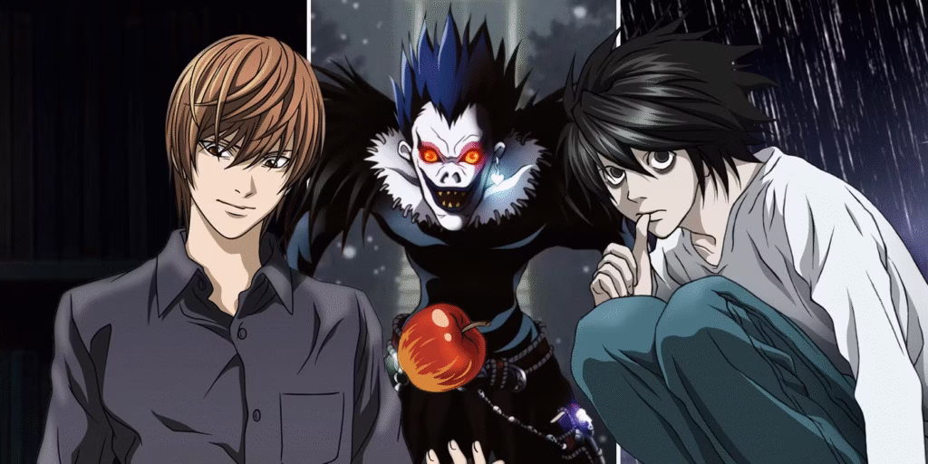 - Sinopse: O brilhante estudante Light Yagami encontra um caderno que mata qualquer pessoa cujo nome seja escrito nele. Com esse poder, ele decide criar um novo mundo sem crimes, mas acaba entrando em um jogo de gato e rato com L, o maior detetive do mundo.