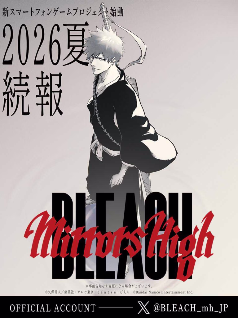 Para completar as novidades, a franquia anunciou um novo título para os dispositivos móveis. Chamado de Bleach Mirrors High, o jogo tem lançamento previsto para algum momento de 2026.